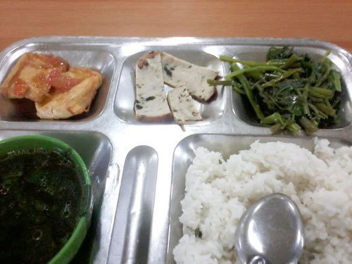 Tự nguyện tăng ca, tiết kiệm “cơm nhà” là giải pháp mà nhiều CN chọn lựa. Điều đáng ngại là không phải công ty nào cũng cung cấp suất ăn đủ dinh dưỡng cho CN. Nhiều công ty đã ký hợp đồng với DN cung cấp suất ăn, giá 15.000đ/phần. Anh L. N. Thịnh (nhân viên một công ty có vốn 100% nước ngoài tại KCN Tân Bình, TP.HCM) cho biết, công ty anh nhiều năm nay đã ký hợp đồng với một công ty ở Q.Tân Phú, TP.HCM để cung cấp cơm trưa cho CN. Một suất ăn CN 15.000đ bao gồm: cơm, món mặn, món xào và canh nhưng chủ yếu chỉ là một dúm rau muống hoặc rau cải bé tẹo, hai lát đậu hủ bao bọc ít cà chua, hai - ba lá chả mỏng như giấy và canh cải. Có hôm thì chỉ có cá ngừ và canh cải. “Bữa cơm được đặt 15.000đ/suất nhưng qua các khâu ăn chia hoa hồng, hao hụt nấu nướng, vận chuyển... nên khó có thể đảm bảo dinh dưỡng. Suất cơm như vậy, ngay cả chị em còn không đủ “dằn bụng”, huống hồ chi nam giới chúng tôi”, anh Thịnh bộc bạch.