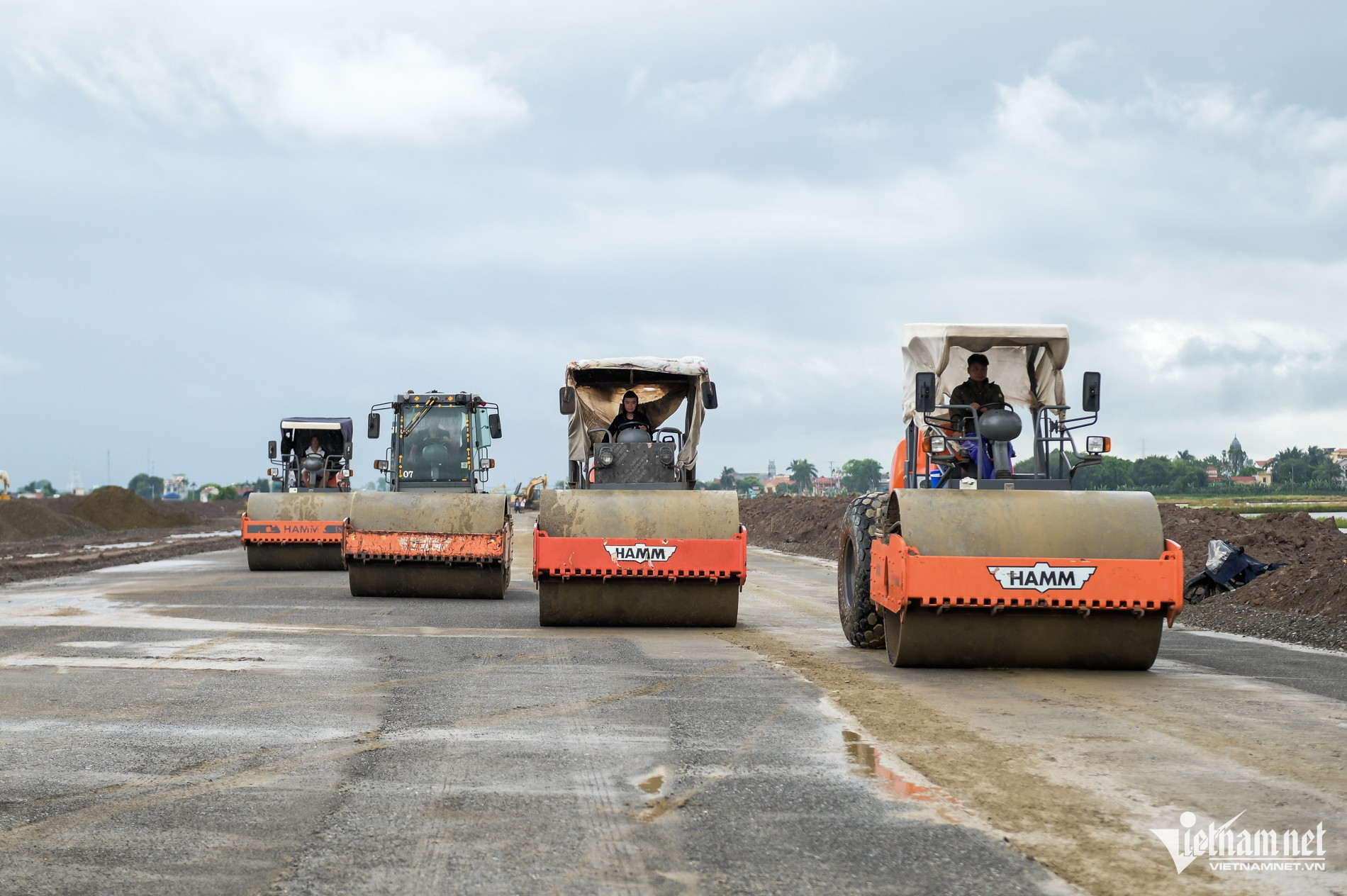 Bất chấp thời tiết mưa nắng thất thường, các công nhân vẫn miệt mài làm việc, đảm bảo tiến độ Dự án xây dựng tuyến đường bộ mới Nam Định - Lạc Quần - Đường bộ ven biển.