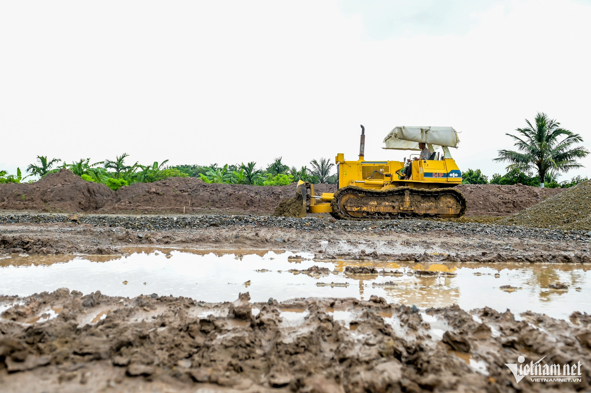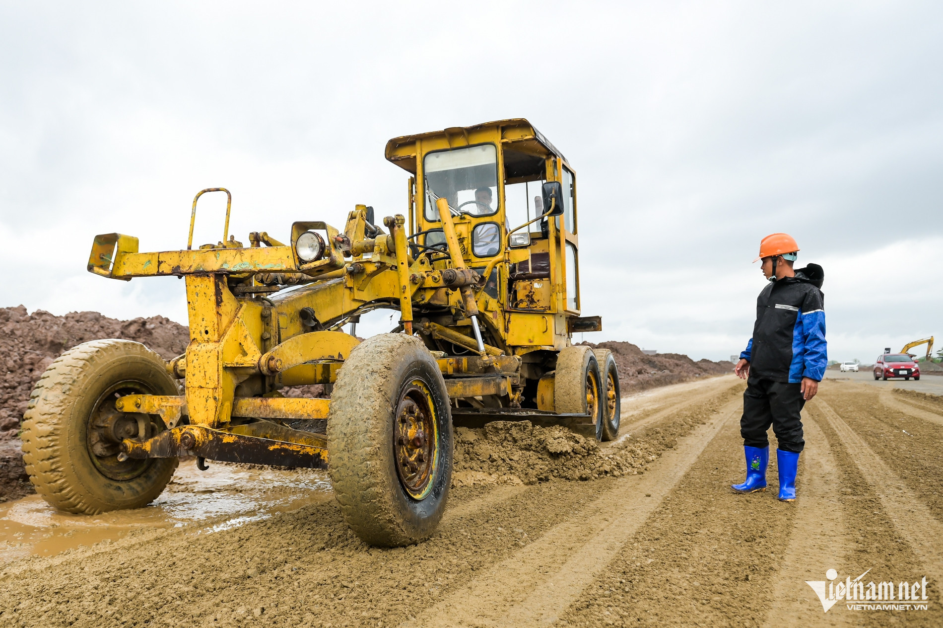 Ông Nguyễn Văn Thành, đại diện nhà thầu cho biết: “Chúng tôi nhận gói thầu từ Km2+643 đến Km10+00. Hiện tại, chúng tôi đang triển khai thi công hạng mục gia tải nền đường, hoàn thiện lớp móng cấp phối đá thải.
