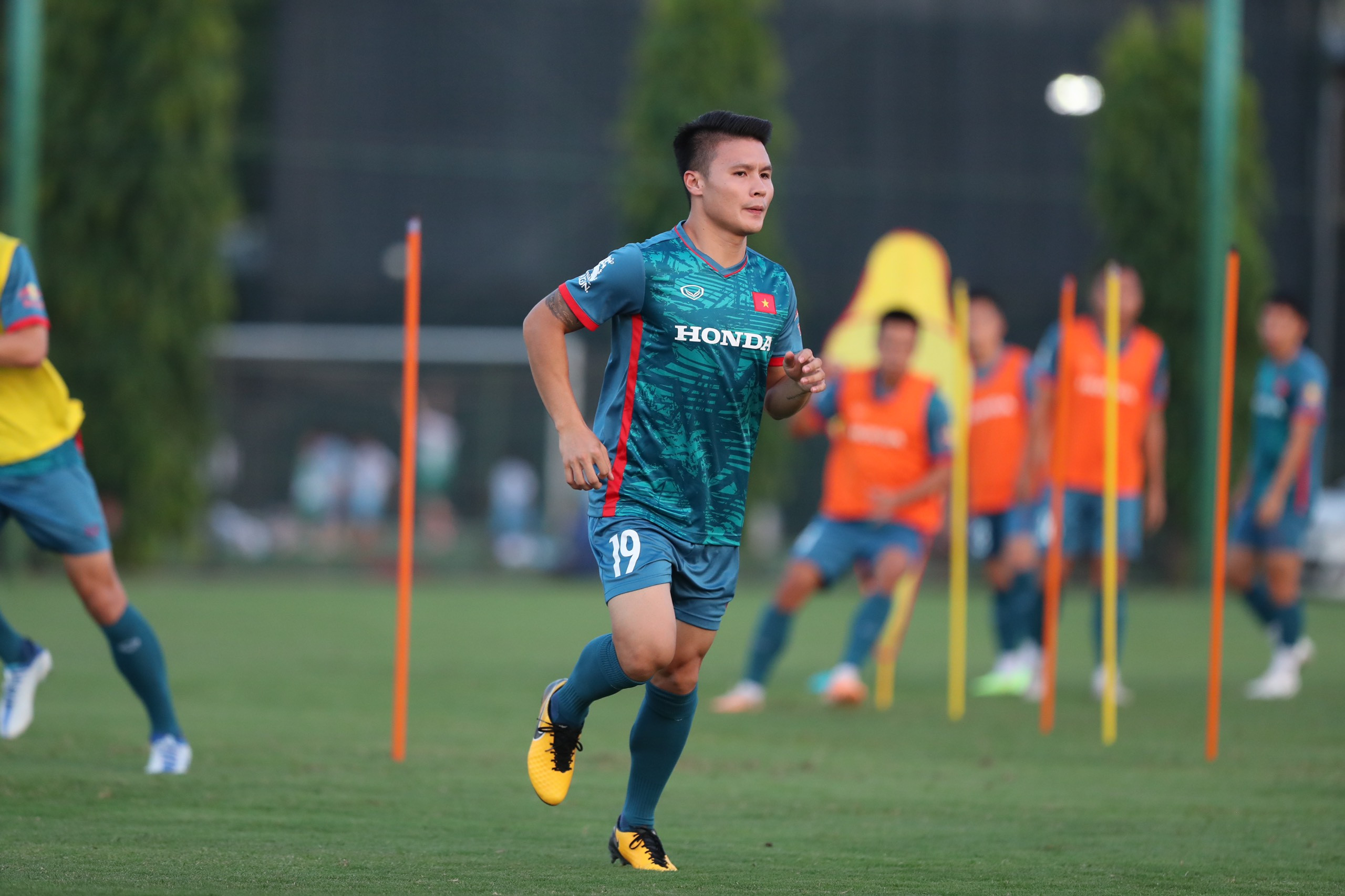 Sau khi từ Nhật Bản trở về, Công Phượng lập tức xỏ giầy tập cùng tuyển Việt Nam vào chiều 5/9Tiền đạo CLB Yokohama cười rất tươi khi hội ngộ các đồng đội ở tuyển. Trước đó, hồi tháng 6, Công Phượng cũng về nước trong đợt FIFA Days, được thi đấu ở trận thắng Syria 1-0 trên sân Thiên Trường.Được về khoác áo tuyển Việt Nam, Công Phượng có tinh thần rất thoải mái. Ở Nhận Bản, anh gần như "mất tích" khi không được ra sân.Công Phượng vẫn luôn là cái tên được người hâm mộ quan tâm, yêu mếnTrong chia sẻ với báo chí trước buổi tập, đồng đội cũ của Công Phượng ở HAGL là tiền vệ Triệu Việt Hưng cho biết: "Điều khó khăn là mình phải làm việc theo triết lý mới. Nhưng với một cầu thủ chuyên nghiệp, không chỉ tôi mà các đồng đội phải luôn luôn thích nghi với điều này. Ở CLB thì tôi chơi ở vị trí tiền vệ biên hoặc hậu vệ. Khi lên đây, tôi có thể thi đấu ở vị trí tiền vệ trung tâm. HLV Troussier luôn luôn chỉ cách di chuyển, hướng dẫn cầu thủ đưa bóng lên phía trước và kiểm soát bóng tốt hơn”.