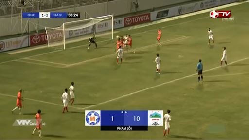 Từ pha tấn công bên cánh phải, bóng được chuyền vào đẹp cho Vũ Phong - người không bị ai kèm để dễ dàng giúp cựu tuyển thủ này mở tỉ số cho trận đấu.