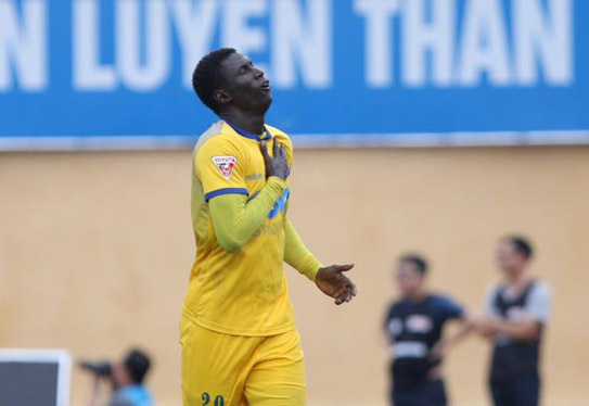 Đến lượt Uche hoàn thành cú đúp trong trận đấu này, với pha đánh đầu nâng tỷ số lên 5-2 cho FLC Thanh Hóa.