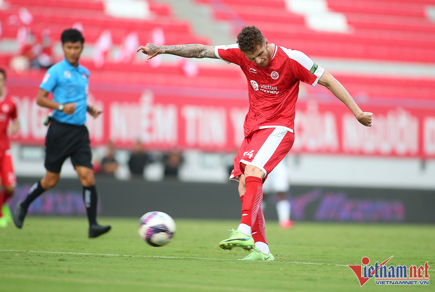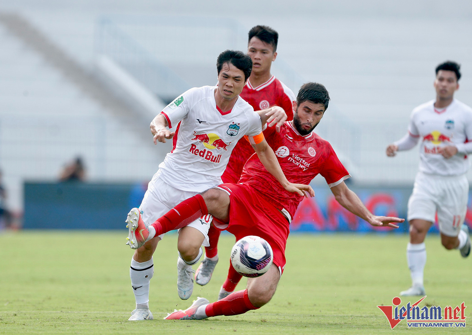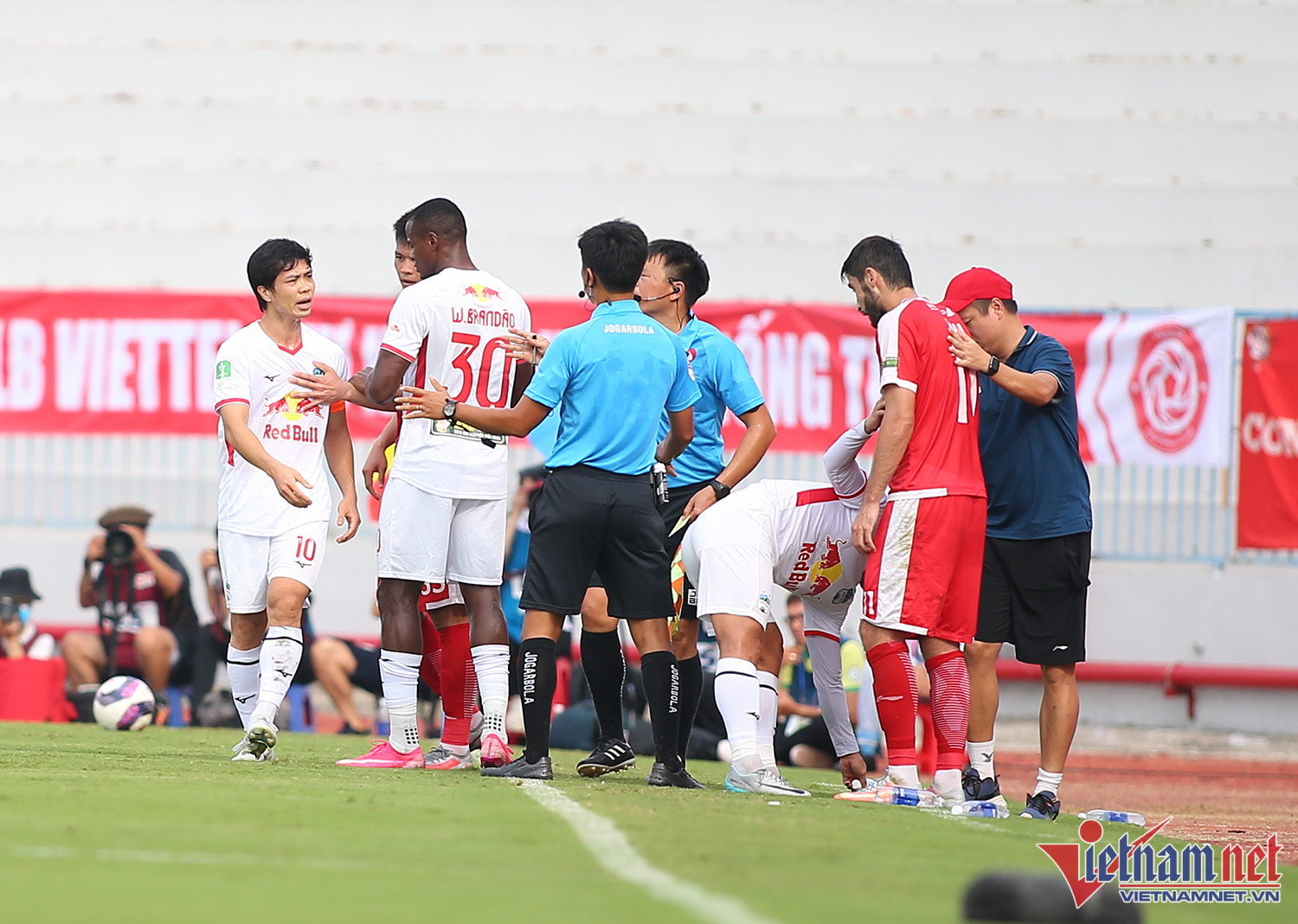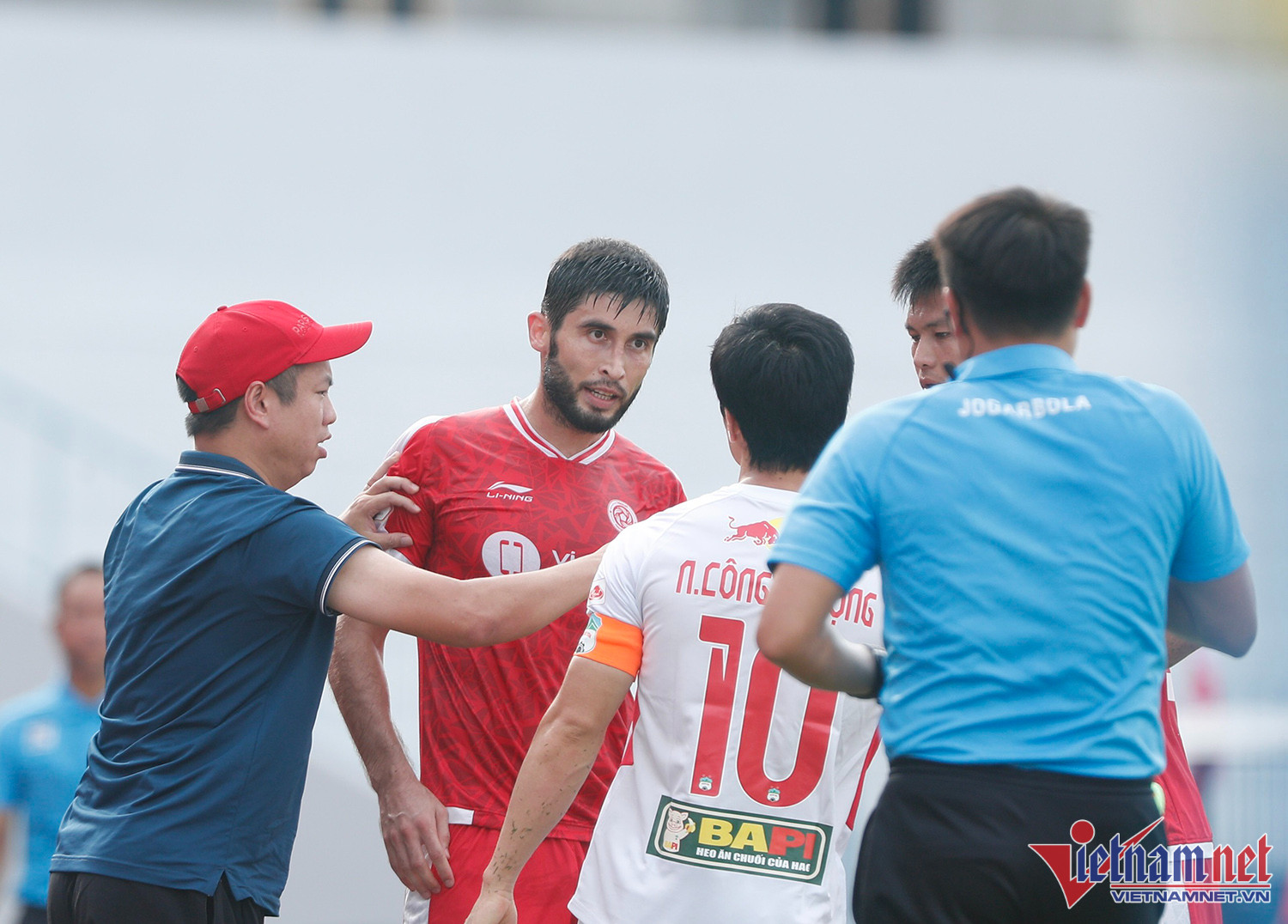 Tiền đạo Nguyễn Công Phượng không giữ được bình tĩnh sau pha phạm lỗi của ngoại binh Viettel trong trận đấu cuối tại cúp Tứ hùng 2022.