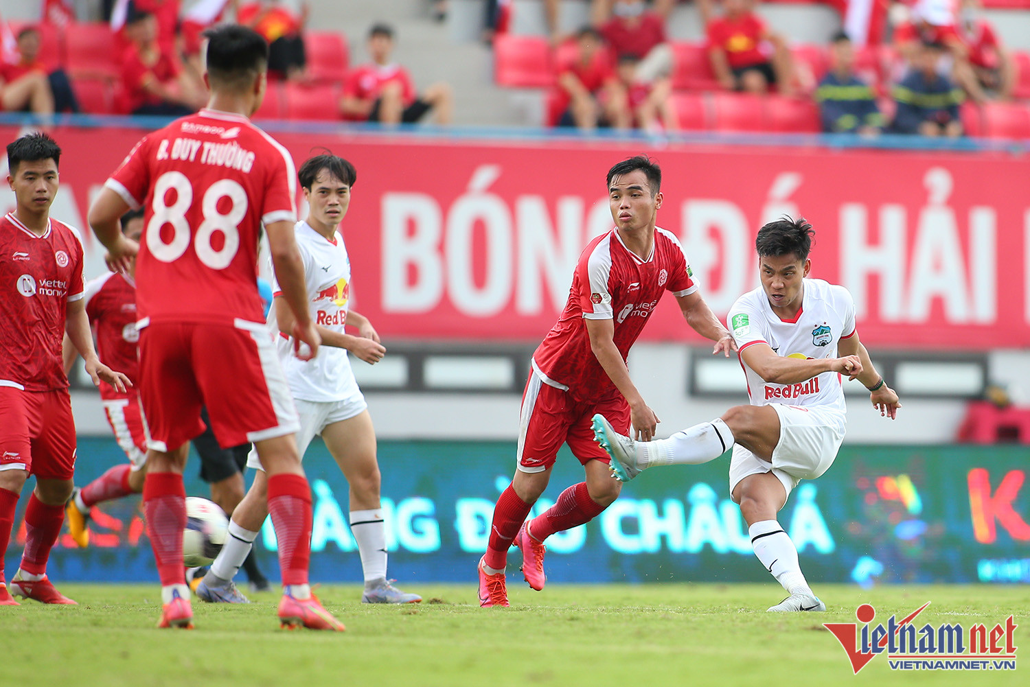 Không còn cửa tranh cúp vô địch, cuộc đọ sức giữa HAGL và Viettel xác định đội giành hạng Ba tại cúp Tứ hùng 2022Ngay phút thứ 7, Geovane Magno với cú sút rất căng mở tỷ số cho ViettelGeovane Magno từng thi đấu cho Sài Gòn, Hà Nội và hiện giờ là chân sút chủ lực của ViettelCông Phượng trận này đá chính từ đầu và được đeo băng đội trưởng. Trong pha xuống bóng bên cánh phải, tiền đạo HAGL bị Jaha phạm lỗiCông Phượng không giữ được bình tĩnh, anh lao vào định ăn thua đủ với ngoại binh ViettelTrọng tài và cầu thủ hai đội kịp thời can ngănNhưng hai cầu thủ vẫn "hằm hè" nhauNgoại binh của Viettel cũng không vừa. Cầu thủ này sau đó phải nhận thẻ vàngCông Phượng và các cầu thủ HAGL có một giải đấu không tốtHLV Kiatisuk liên tục có những điều chỉnh về nhân sự trong trận đấuTrận đấu hấp dẫn hơn khi hai đội chơi cởi mởSau khi Bảo Toàn gỡ hòa 1-1, Văn Thanh nâng tỷ số lên 2-1 cho HAGLHAGL giành chiến thắng chung cuộc 2-1, giành hạng Ba tại giải Tứ hùng - cúp Sâm Ngọc Linh Kon Tum K5 2022Sau cúp Tứ hùng 2022, Viettel sẽ chuẩn bị cho AFC Cup 2022, trong khi HAGL tiếp tục tập luyện chờ ngày V-League khởi tranh vào cuối tháng 6.