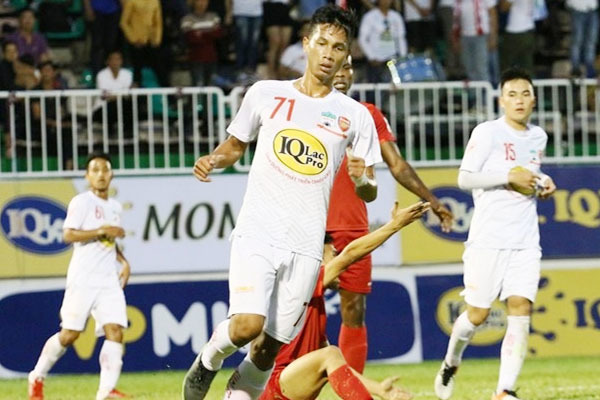 Văn Toàn đối mặt với thủ môn Đức Cường nhưng lại dứt điểm quá hiền, bỏ lỡ cơ hội mở tỷ số cho HAGL