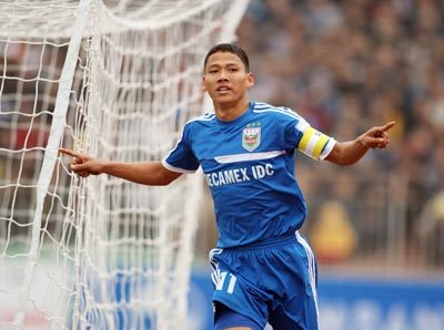 Anh Đức tận dụng tình huống các hậu vệ HAGL chơi thiếu quyết đoán, ra chân rất nhanh làm tung lưới thủ thành Văn Tiến, gỡ hòa 1-1 cho B.Bình Dương.