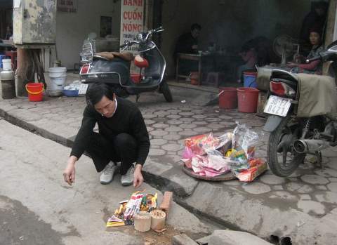 Sáng hôm nay, cả tòa nhà của chị Lan, gần như văn phòng nào cũng cúng ông Công ông Táo. Vào phòng nào cũng thấy khói hương nghi ngút. Gần trưa, trên sân thượng tòa nhà nghi ngút khói lửa hóa vàng của dân công sở. Một số văn phòng còn có thêm xôi gà lộc cúng ông Công ông Táo để cùng liên hoan.