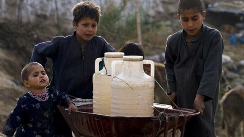Các cậu bé Pakistan đi lấy nước về dùng từ một giếng khoan ở ngoại ô Islamabad. Ảnh: AP |
