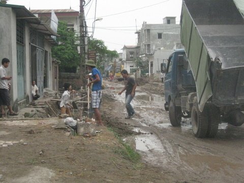 Anh Chiến, người làng Đại Áng cho rằng “giá kể để người dân làng tự làm đường có khi còn nhanh hơn mấy nhà thầu xây dựng ở đây”.
