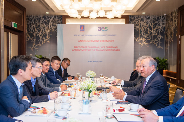 Sau buổi lễ công bố các quyết định nhân sự cấp cao Công ty TNHH Kho cảng LNG Sơn Mỹ, PV GAS và Tập đoàn AES đã có buổi làm việc cấp cao về kế hoạch triển khai dự án Kho cảng LNG Sơn Mỹ và một số hợp tác trong tương lai.