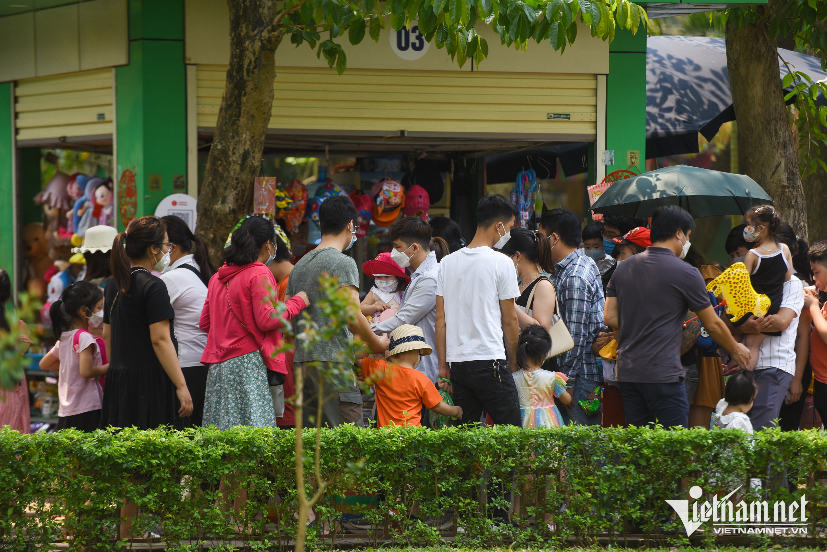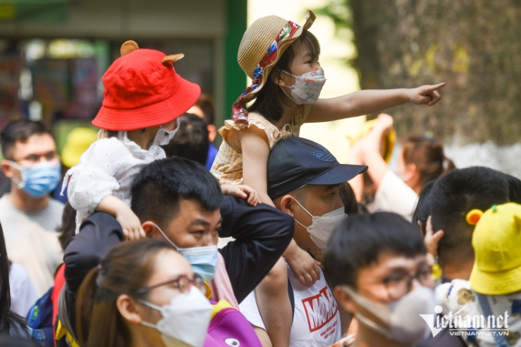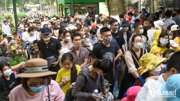 Hàng ngàn người dân đổ về công viên Thủ Lệ trong sáng 10/4. Dòng người chen chân kín đặc từ cổng vào các khu vui chơi, khu nuôi thúCác gia đình nhích từng bước để tiến vào phía trong công viên. Đây là địa điểm được nhiều gia đình có con nhỏ lựa chọn nếu không có cơ hội đi du lịch xaTrẻ em được cha mẹ kiệu lên cao để bớt cảnh khổ sở chen chúc. “Tôi đã đến gần 1 giờ nhưng con chưa kịp xem một con thú nào, xung quanh chỉ toàn người là người”, anh Trung Đức (Ba Đình) cho biết