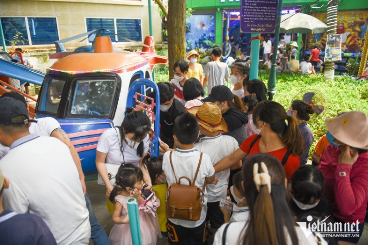 Trẻ em chen chúc tại khu vui chơi, chờ đợi mòn mỏi 20 - 30 phút để tới lượt trải nghiệm đu quay, chơi bóng…