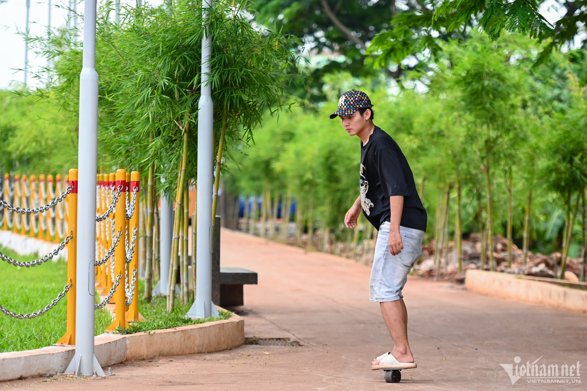Công viên được trồng nhiều loài cây tạo không gian xanh mát, lý tưởng để đi dạo ngắm cảnh. Hệ thống máy tập thể dục ngoài trời phục vụ nhu cầu thể dục, thể thao của người dân.