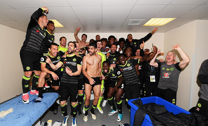Video các cầu thủ Chelsea ăn mừng trong phòng thay đồ