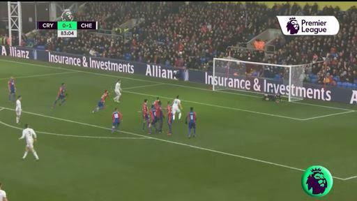 Hazard bị phạm lỗi ngay đầu vòng cấm. David Luiz bước lên thực hiện cú sút phạt sở trường nhưng bóng lại chạm chân 1 cầu thủ Palace ra ngoài.