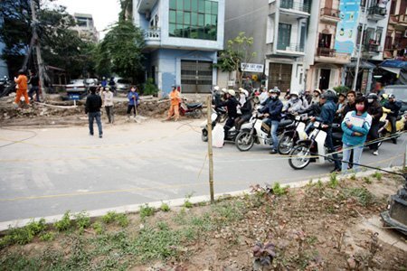 | Ngay sau khi sự việc xảy ra, công nhân thi công mới phân luồng và chắn đường. |