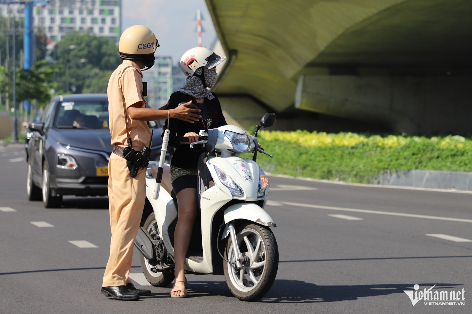 Bị CSGT chặn lại nhắc nhở do chạy vào đường cấm, anh Lê Triệu Hoàng (34 tuổi, ngụ quận 8) tỏ ra bối rối vì buộc phải quay đầu.