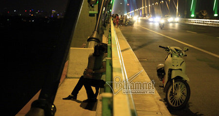 ![]() Khi thấy CSGT dừng xe kiểm tra, nhiều bạn trẻ vội vàng trèo từ ngoài lan can cầu vào bên trong bất chấp nguy hiểm.