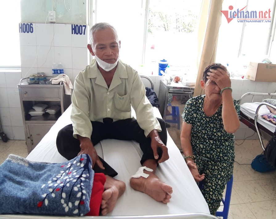 “Ban đầu, nơi vết thương cũ mọc một cái mụn, tôi đi bệnh viện dưới Cà Mau mổ rồi, nhưng mãi mà không lành, cứ chảy dịch vàng hoài. Hôm rồi có bác sĩ trên thành phố (TP.HCM) về, nói tôi phải đi chữa cho dứt điểm, để nặng có nguy cơ mất cả bàn chân trái. Vợ chồng tôi tá hỏa vội đi liền”, ông Lót giãi bày.