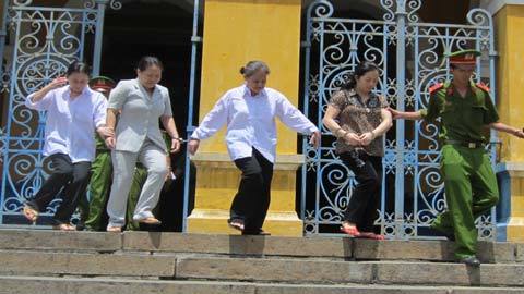 Trước tòa, với vẻ mặt bình thản, đôi mắt ráo hoảnh các bị cáo cúi đầu khai