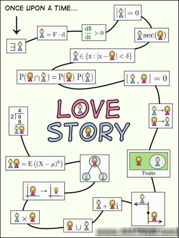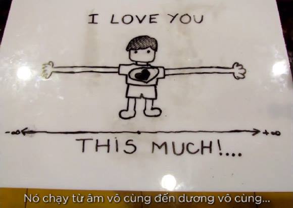Tuy nhiên, cũng có những lời tỏ tình toán học thật giản đơn, chân thật, chẳng hạn như bức vẽ “Tôi yêu cậu chừng này này” với cánh tay giang ra từ âm vô cùng đến dương vô cùng.