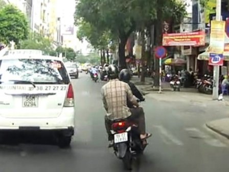 2 kẻ cướp gương ô tô giữa Sài Gòn (ảnh cắt từ clip) |