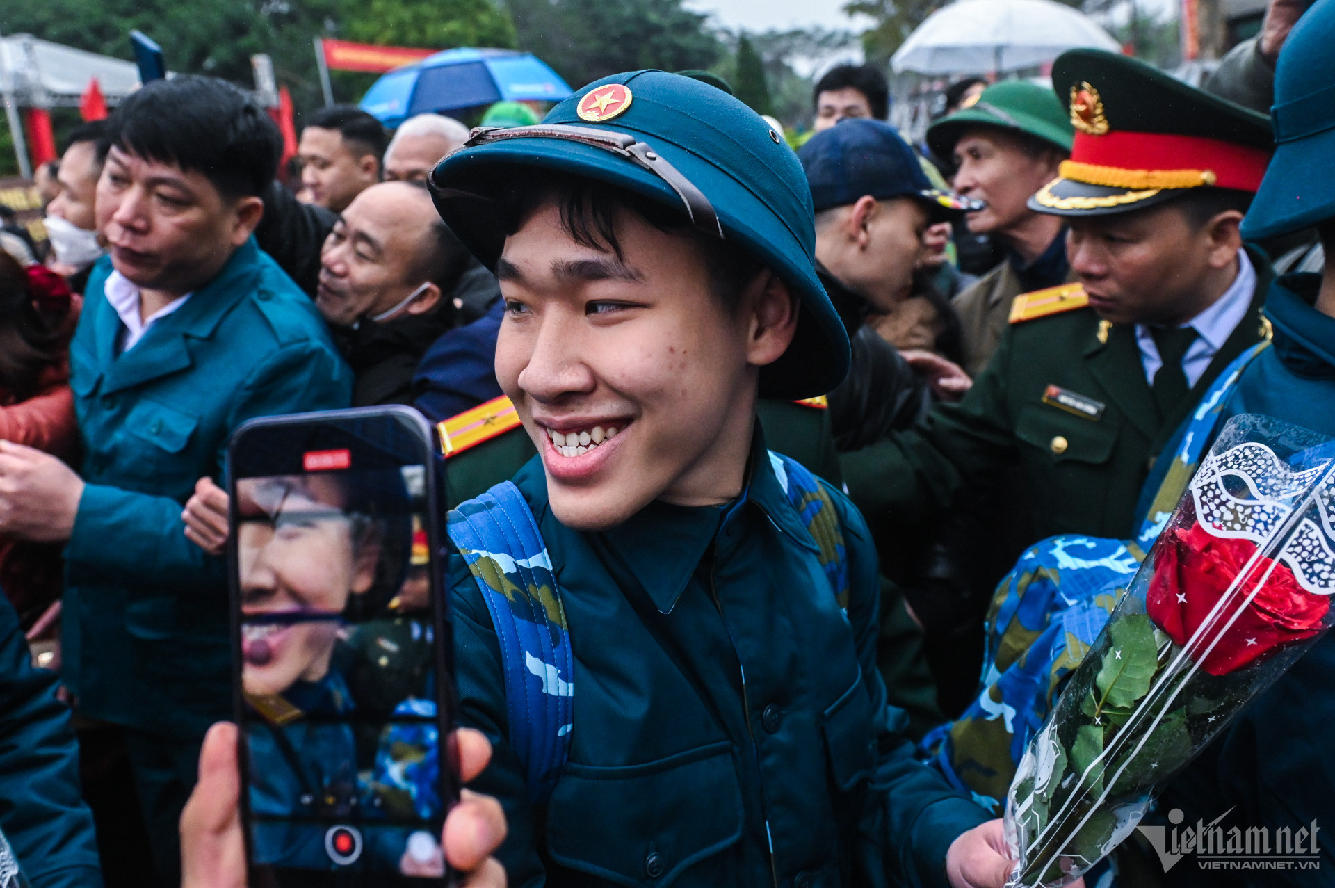 Một vài tân binh không kìm được sự xúc động trước khi lên đường, số khác lại cười tươi rạng rỡ.