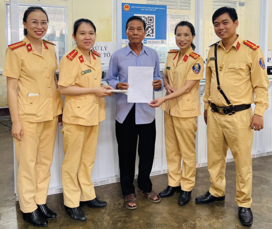 Bằng các biện pháp nghiệp vụ, Trung tá Đỗ Thị Thu Hà - Tổ trưởng tổ xử lý vi phạm giao thông cùng cán bộ cấp dưới xác định tài sản trên là của cụ ông Lư Hữu Báu nên gọi điện báo đến nhận lại tài sản.