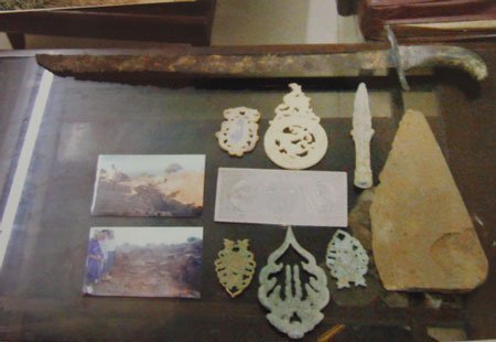 | Các cổ vật mà ông Trần Văn Tiệp đã tìm được trên đỉnh núi Tàu trong những lần thăm dò từ năm 1993-2003 (Ảnh: Tuổi trẻ) |