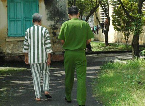 Ông Phạm Văn Phê lê bước chân chậm chạp về buồng giam (Ảnh: Công an Nhân dân)