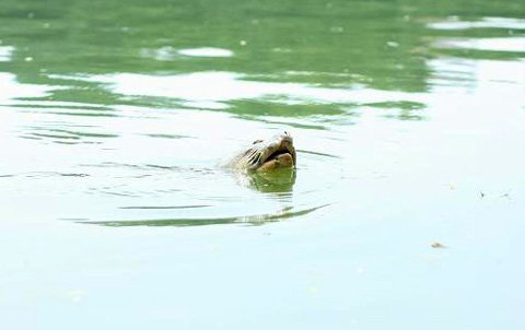 Cụ rùa ngoi lên và bơi kéo dài gần 1 tiếng đồng hồ, sau đó vẫn thỉnh thoảng nổi lên, chủ yếu là ở sát gần bờ hồ Gươm.