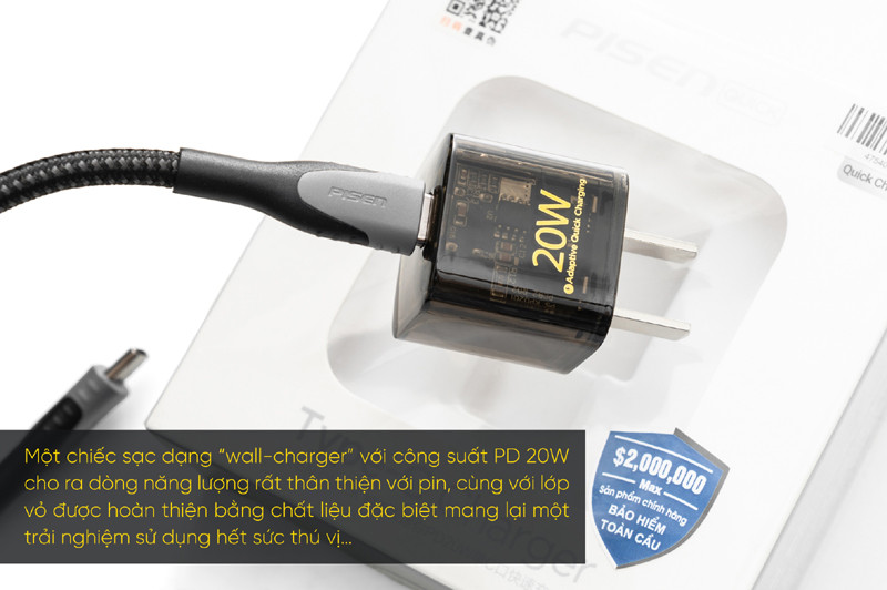 Chỉ có một cổng Type-C PD 3.0 duy nhất được Pisen trang bị trên chiếc sạc này nhằm giữ tính nhỏ gọn. Sản phẩm sở hữu tới 9 cấp độ bảo vệ: quá xả, quá dòng, quá mức, quá áp, quá tải, nhiệt độ cao/thấp, ngắn mạch, trường điện từ. Do đó, người dùng cũng không cần lo lắng khi lỡ cắm nhầm sạc vào ổ 110V. Theo nhà sản xuất, con chip trong sạc sẽ tự động nhận diện tình trạng sai điện áp và ngay lập tức vô hiệu hóa khả năng sạc nhằm bảo vệ thiết bị.