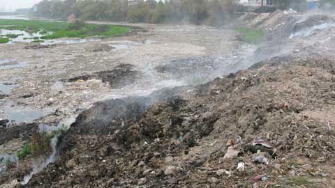 Ảnh minh họa: Rác thải tại một làng nghề ở Bắc Ninh tập kết ra sông khiến dòng sông đen ngòm, cạn kiệt và bốc mùi nặng nề. Ảnh: Lê Nhung |