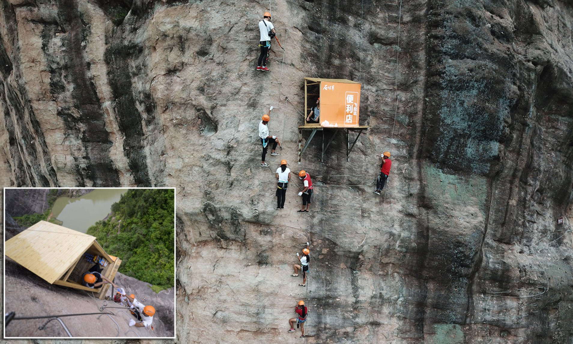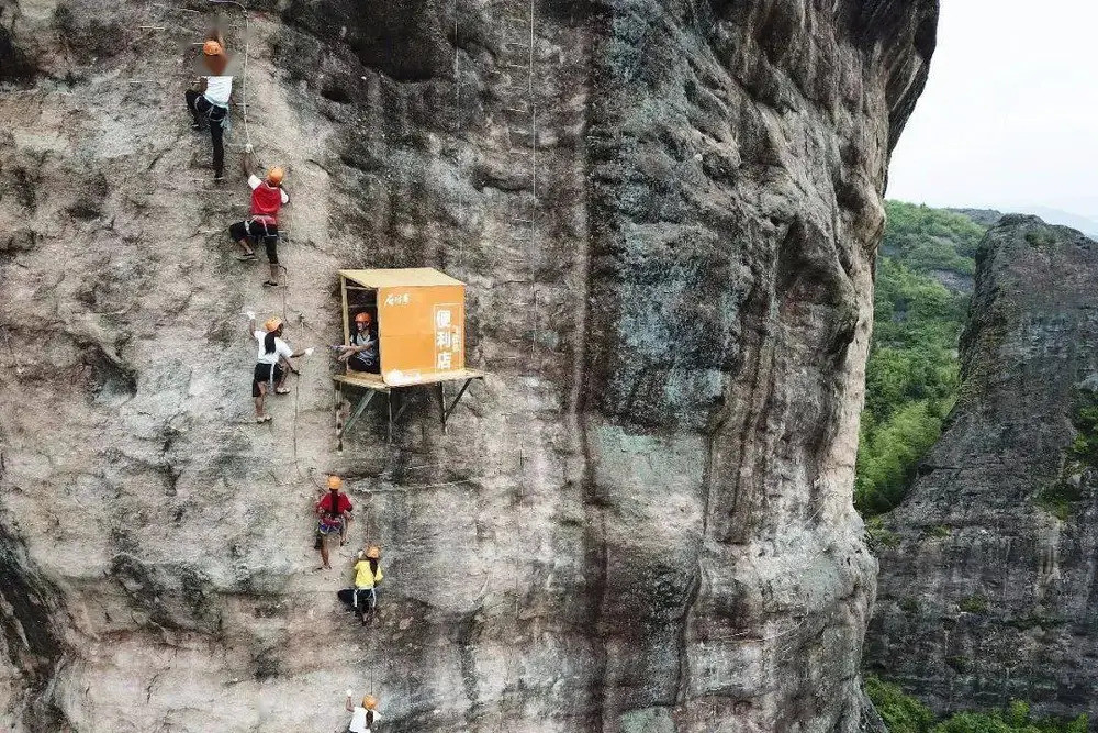 Được mệnh danh là cửa hàng tiện lợi "bất tiện nhất thế giới", cửa hàng này được ghép bằng một dãy ván gỗ, bên dưới có thanh thép chống đỡ. Ngay sau khi những hình ảnh về cửa hàng này được một du khách chia sẻ lên mạng xã hội và các trang báo điện tử Trung Quốc đưa tin, từ khóa "cửa hàng tiện lợi bất tiện nhất" đã đạt tới gần 50 triệu lượt tìm kiếm trên tất cả các nền tảng trực tuyến.