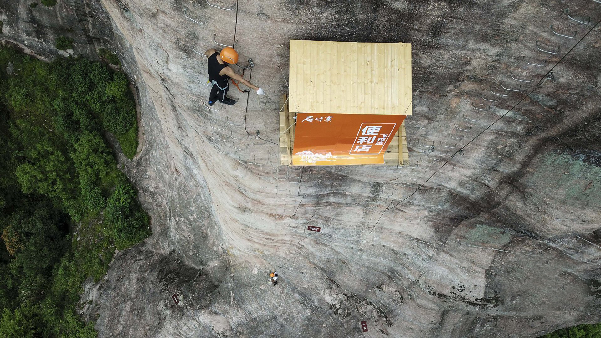 Theo Insider, cửa hàng đặc biệt này nằm trên vách núi thuộc Công viên Địa chất Quốc gia Shiniuzhai, tỉnh Hồ Nam, Trung Quốc.