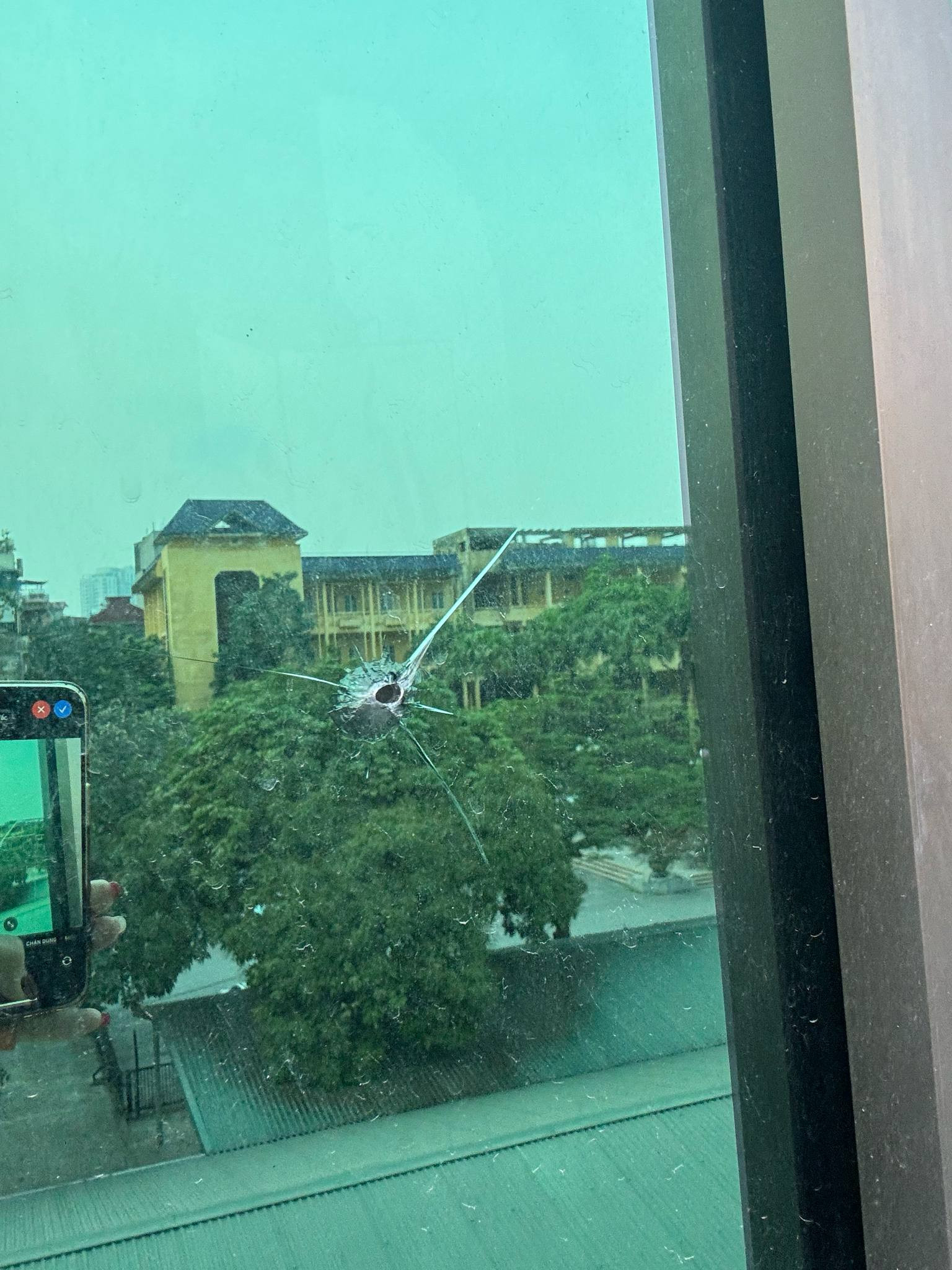 Ngay khi nhận được tin báo, chiều ngày 23/4, Công an phường Thịnh Quang đã đến kiểm tra. Theo Công an phường Thịnh Quang, hiện chưa xác định chính xác nguồn gốc vật thể kim loại. Tuy nhiên, qua kiểm tra hiện trường, lực lượng chức năng xác định hướng vật thể kim loại bắn xuyên qua kính không đối diện nhà dân.