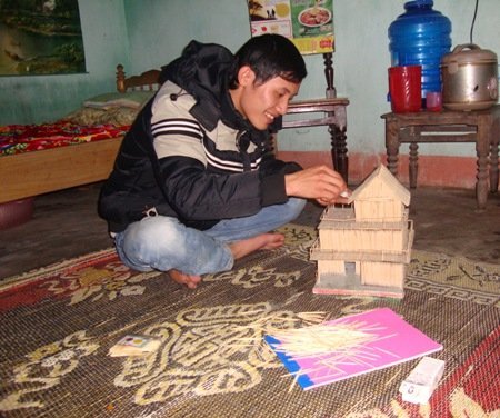 Thay vì bỏ cả triệu đồng để mua một mô hình ngôi nhà làm sẵn trên mạng, Đoàn Hoài Bắc, sinh viên ĐH Cảnh sát nhân dân đã học hỏi kinh nghiệm từ những đàn anh đi trước rồi tự “thiết kế” một ngôi nhà từ những que xiên thịt.