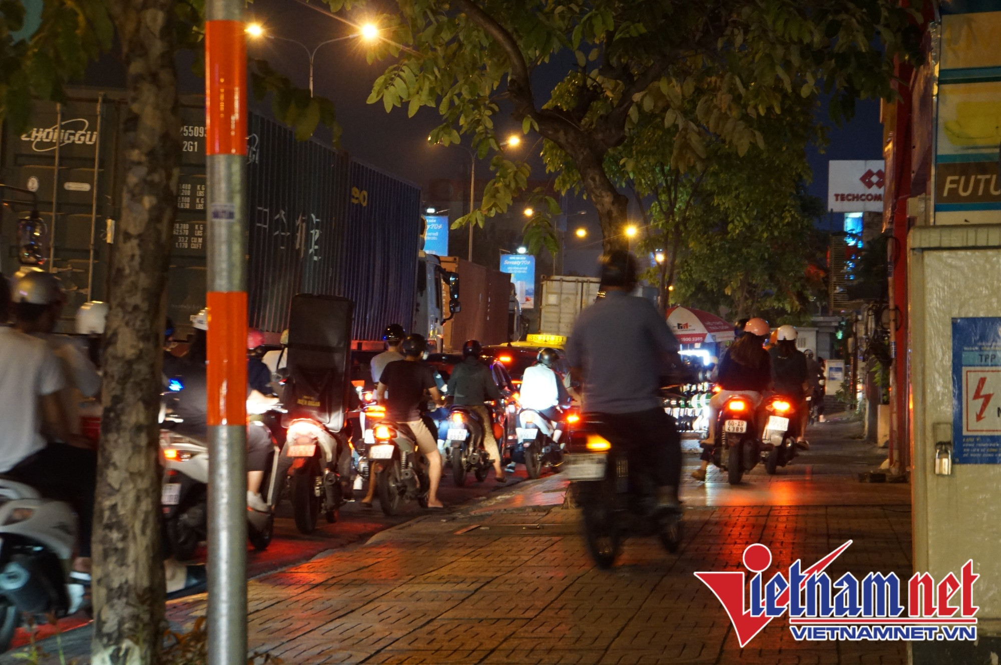 Đến 22h, thời điểm xe container, xe tải nặng được phép lưu thông vào trung tâm TP khiến tình trạng ùn tắc càng trở nên nghiêm trọng hơn.