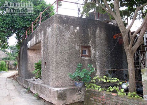 Ảnh bên phải là chiếc cầu thang sắt được chủ quán cà phê làm dẫn khách lên nóc lô cốt