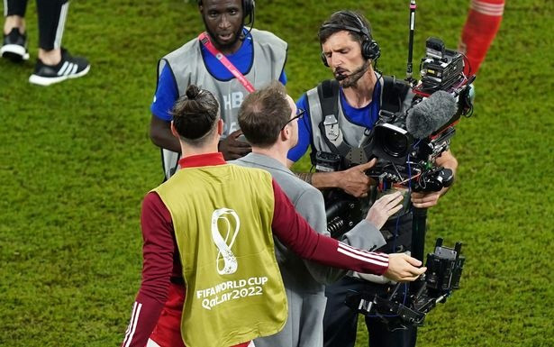Gareth Bale nổi nóng với một người quay phim ở World Cup 2022. Ảnh: PA. |