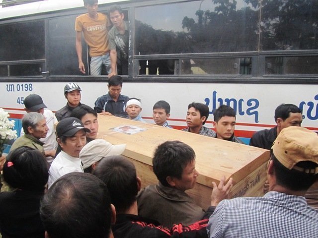 Chiếc xe khách Lào BKS 0198 chất đầy “nỗi đau” sau chặng đường dài hàng trăm km từ đất Lào sang, đậu ngay đầu làng thuộc xóm Trung Đông, xã Vân Yên.