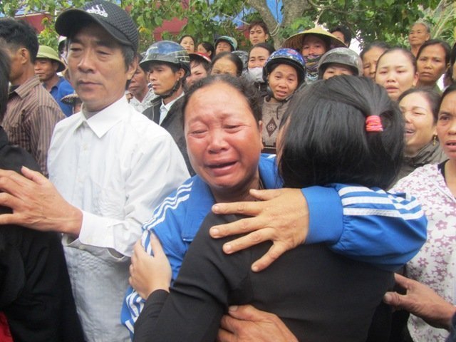 Hàng trăm người dân vây kín, tiếng khóc than não nề.