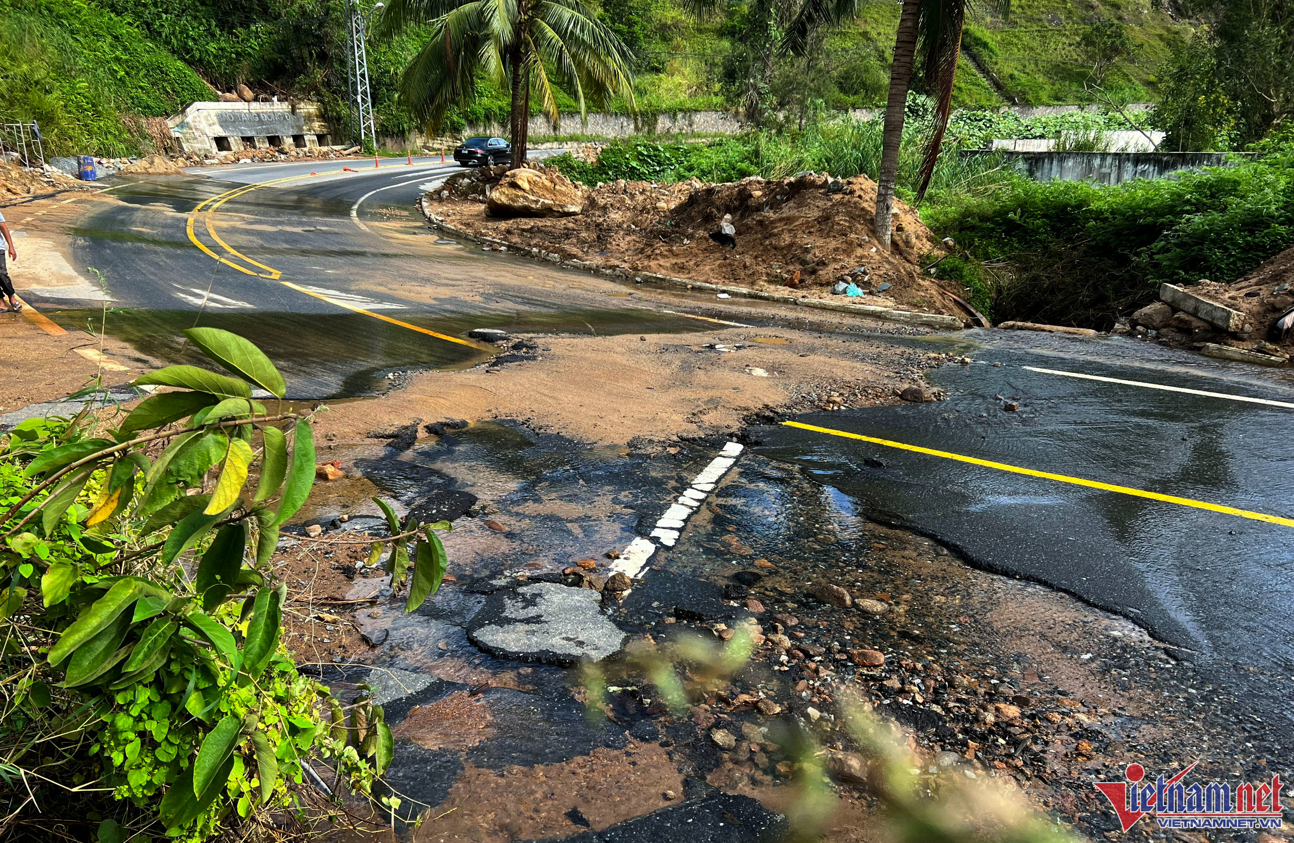Ghi nhận của VietNamNet, hai tuần sau trận mưa lịch sử tối 14/10, hàng chục điểm sạt lở, sụt lún trên bán đảo Sơn Trà (quận Sơn Trà) vẫn chưa được khắc phục xong.Điểm sạt lở phía taluy âm ăn sâu vào phần đường lên bán đảo Sơn Trà buộc cơ quan chức năng phải dựng hàng rào để cảnh báo người và phương tiệnSụt lún tạo thành hố sâu gần khu vực chùa Linh ỨngĐoạn đường từ Bảo tàng Đồng Đình hướng lên chùa Linh Ứng bị hư hỏng, đất đá ngổn ngangCơ quan chức năng đang khắc phục các điểm sụt lún, sạt lở tại bán đảo Sơn Trà