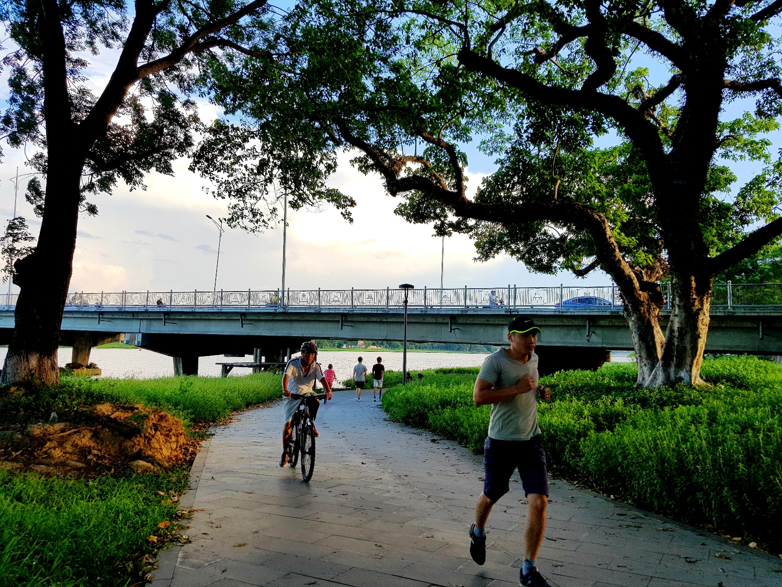 Đặc biệt, ở bờ Nam là con đường đi bộ bằng gỗ lim đã trở thành một điểm nhấn tôn lên vẻ đẹp cho dòng sông. Những vườn hoa, khu tập thể dục công cộng cũng được đầu tư để người dân hưởng thụ không khí trong lành.