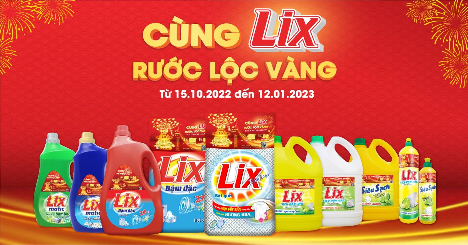 Trong suốt lịch sử 50 năm phát triển, các sản phẩm LIX được đông đảo người tiêu dùng Việt đón nhận. Đại diện nhãn hàng bày tỏ, đó chính là động lực để LIX bứt phá, cải tiến sản phẩm, giúp mỗi sản phẩm đến tay người tiêu dùng chất lượng hơn theo thời gian. Để tri ân khách hàng, Công ty Cổ phần Bột giặt LIX tổ chức chương trình khuyến mại “Cùng LIX rước lộc vàng” với cơ hội trúng vàng SJC 9999 cùng hàng ngàn giải thưởng giá trị.