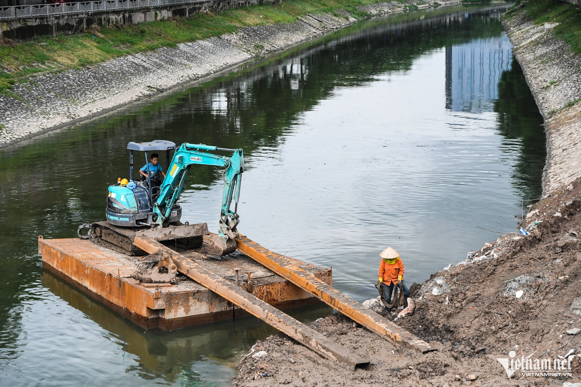 Đoạn đầu nguồn dòng sông tại khu vực dọc Quan Hoa, việc nạo vét lòng sông, chỉnh chu hạng mục hai bên bờ cơ bản hoàn tất. Phần cống đổ nước thải sinh hoạt được thiết kế đập ngăn chặn rác thải.