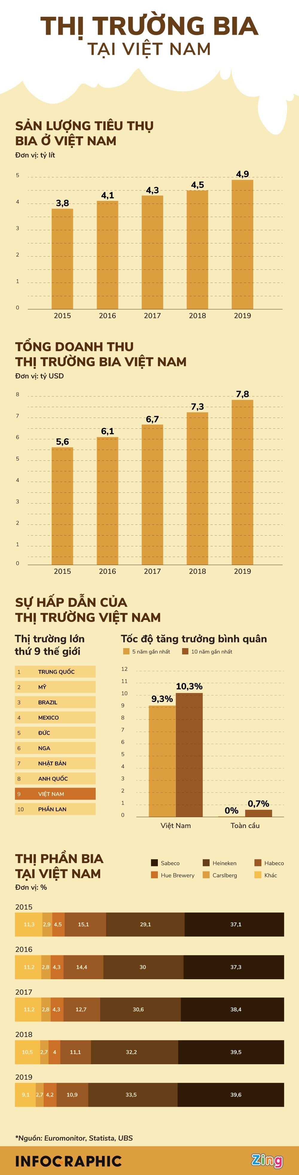 Là quốc gia tiêu thụ bia lớn thứ 9 thế giới với tốc độ tăng trưởng vượt xa mặt bằng chung, Việt Nam là thị trường hấp dẫn với các đại gia quốc tế như ThaiBev, Heineken.