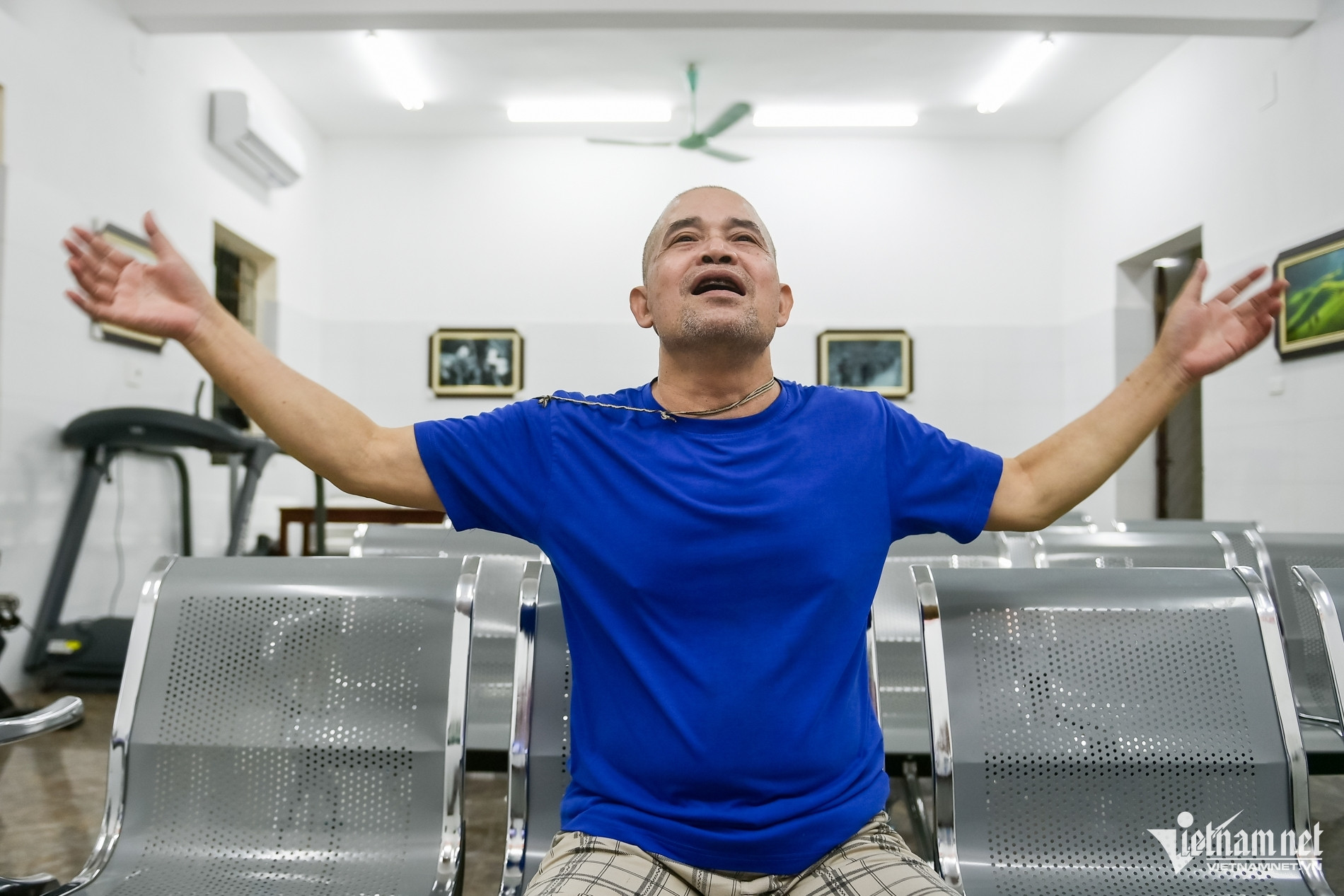 Còn ông Cao Đăng Hà (SN 1960, Hà Nội) thích ngồi cùng đồng đội trong Trung tâm ôm cây đàn, đôi tay run run gảy lên những giai điệu quen thuộc của một thời trận mạc.
