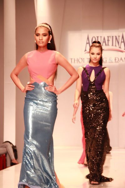 Sau một vài phút chờ đợi, Á hậu Trương Thị May xuất hiện đầu tiên, dẫn đầu top người mẫu ra sân khấu thực hiện phần chào khán giả.