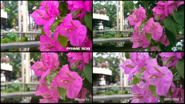 Không chỉ là smartphone có cấu hình mạnh 8 nhân, thiết kế độc đáo, PRIME 508 sử dụng bộ cảm biến Exmor R trên nền tảng CMOS có năng lực xử lý độ nhiễu ảnh tốt và màu sắc trung thực hơn, được thiết kế 5 lớp thấu kính (5P Lens) để cân bằng quang sai và tăng độ chi tiết hình ảnh hơn 30% so với thấu kính thông thường, sử dụng bộ lọc thủy tinh màu xanh (Blue Coating lens) để giúp màu sắc hình ảnh và độ tương phản tốt hơn cũng như giảm mức độ phản xạ ánh sáng trên bề mặt thấu kính. Hiện nay, khẩu độ f/2.0 của camera trên chiếc smartphone vẫn còn là “hàng hiếm”. Nhiều dòng máy có giá cao hơn như iPhone 5S, Galaxy S5 ... vẫn còn sử dụng f/2.2. Trong khi đó, camera của PRIME 508 có f/2.0 hỗ trợ chụp ảnh tốt trong điều kiện ánh sáng thiếu mà không cần bật flash.
